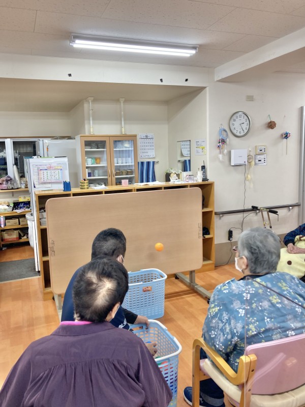 壁にボールを当ててから入れ物に入れて得点を競う、至ってシンプルな
