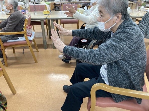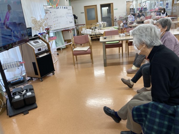 基本的にリモート体操は午後から行われるので、食後は体動かすのもちょっとかったるいなー・・・という方もいますが、この日は割と暖かい気候に恵まれまして、食後にも関わらず元気よく参加される方が多くいらっしゃいました。