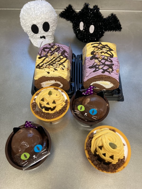 「さて、気を取り直して。カボチャのロールケーキとカボチャのプリン、チョコのプリンですね。甘そうで美味しそうです」