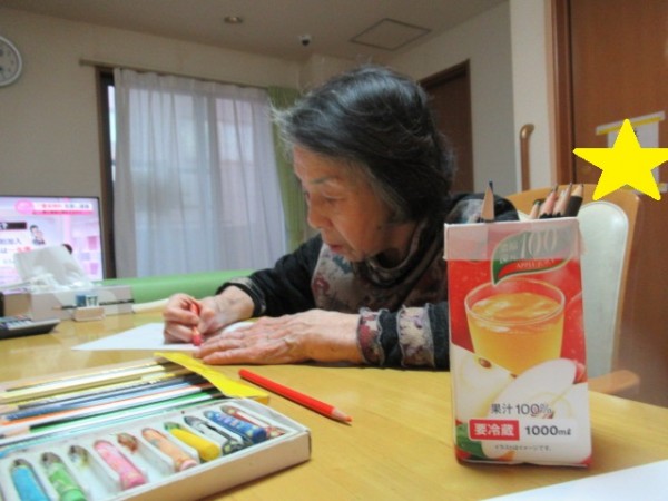 スタッフからのお願いで、皆さん何やら色塗りをはじめました。