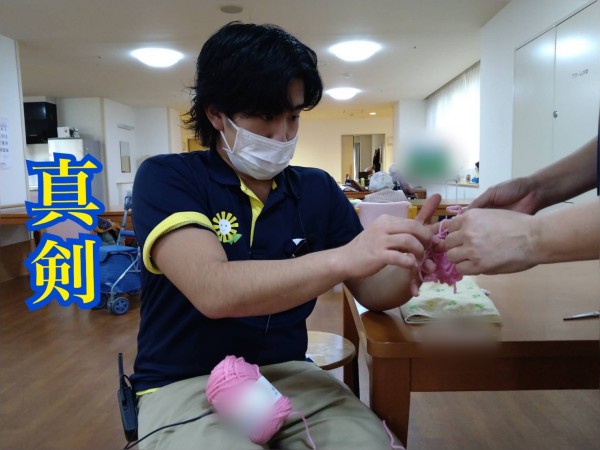 皆さまと一緒にやるために、自撮り王子も編み方習得中。