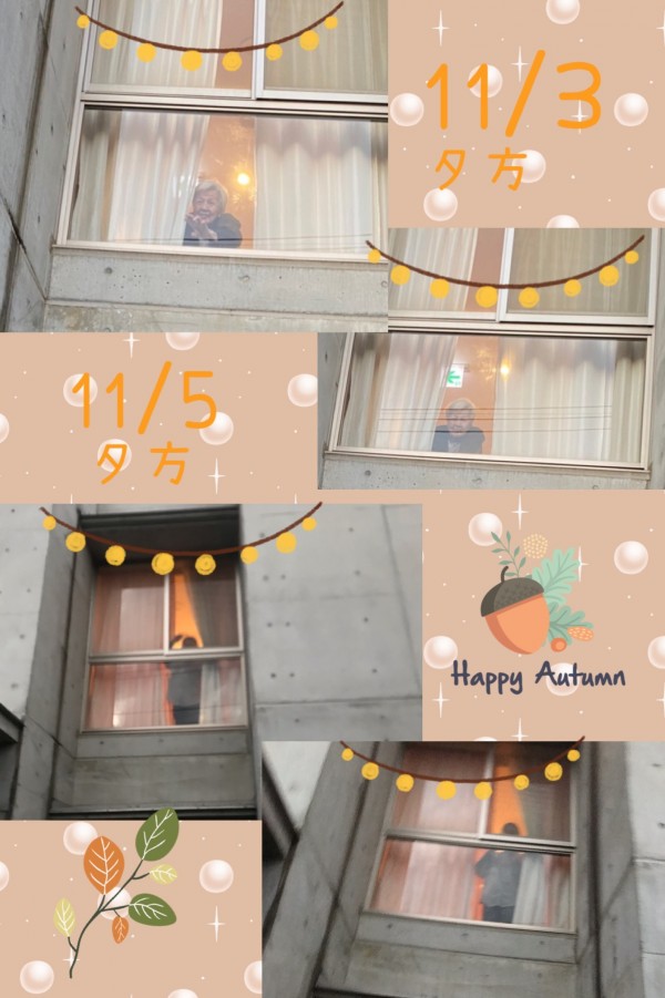 夜勤出勤時ホーム駐車場よりふと二階の窓を眺めると・・ご入居者様がお外を眺めていられました(*'ω'*)
