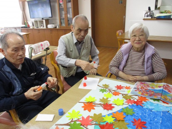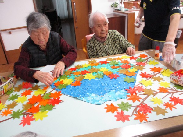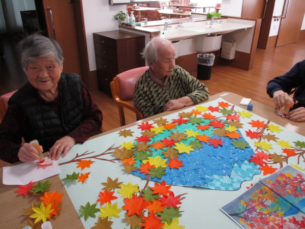 色とりどりのもみじも職員といっしょにたくさん作って下さいました。