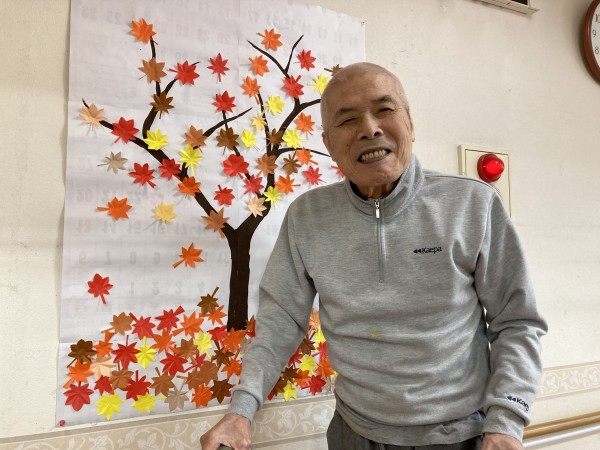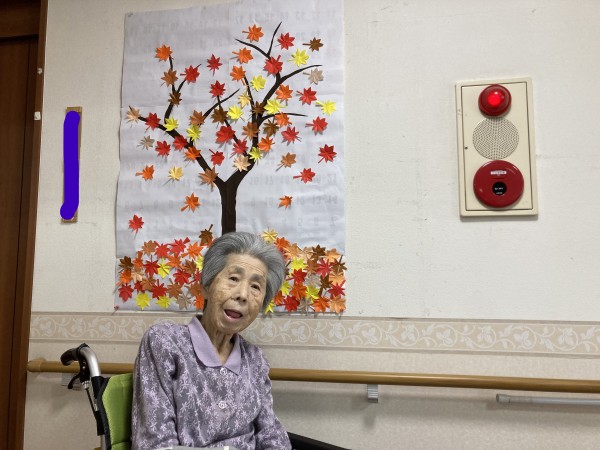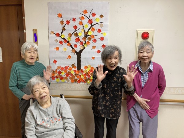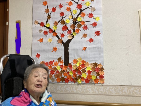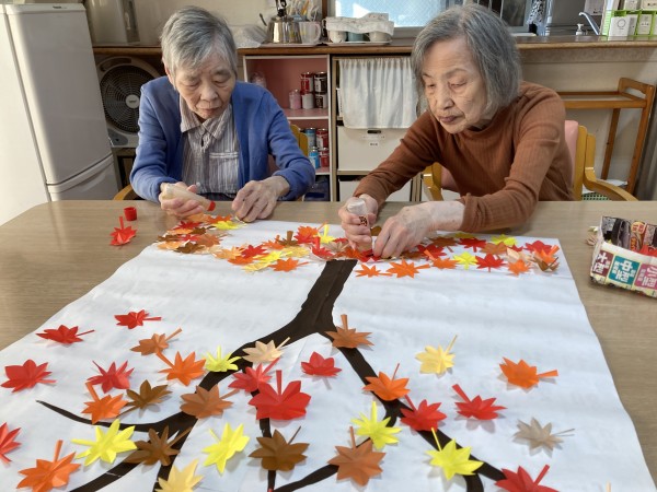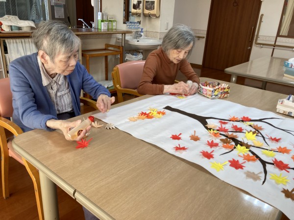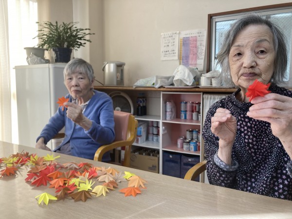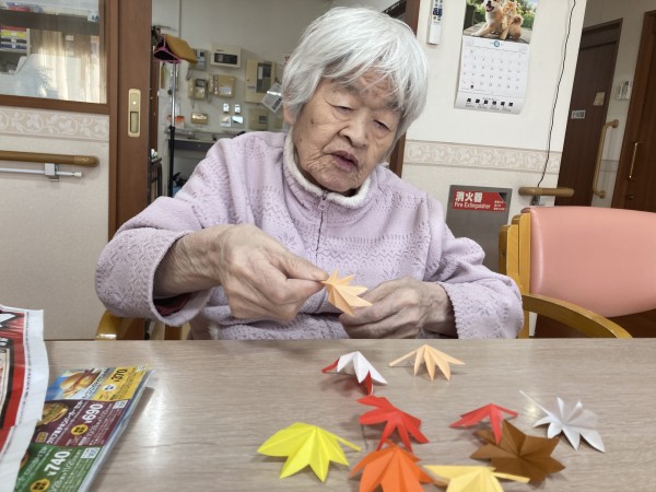 スタッフが折り紙で紅葉を作成し利用者さんに広げてもらう作業をしてもらいました(*^^*)
