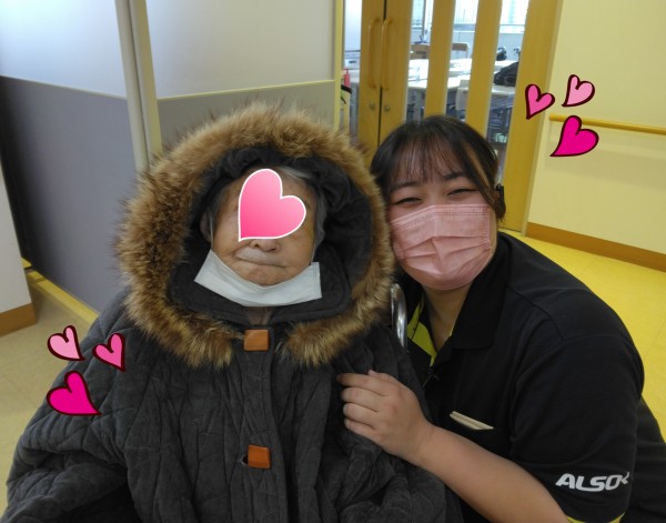 お見送りの、こうめケアスタッフと記念に1枚(^^)