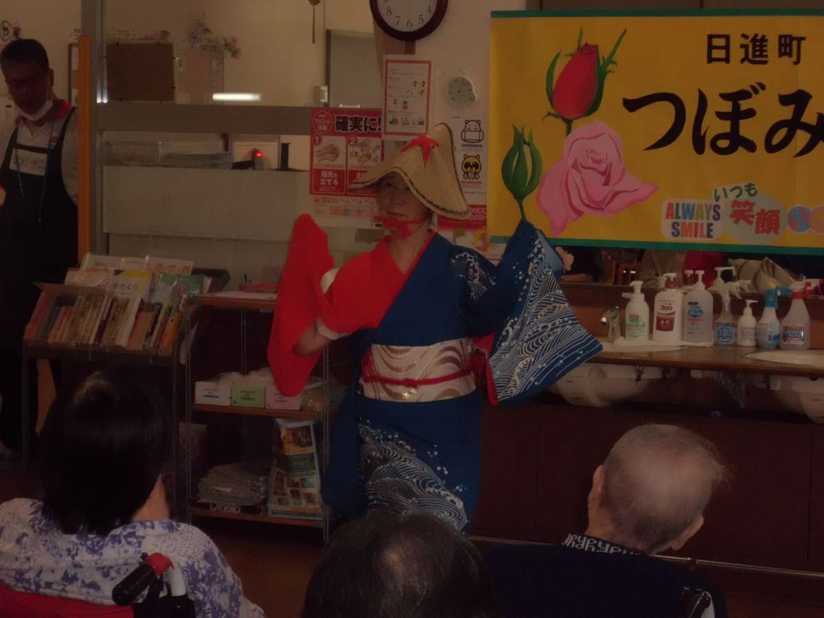 まずは法被をまとい、一糸乱れね踊りを披露。次に、着物に身を包み、お祝いの華麗な踊りを披露していただきました。