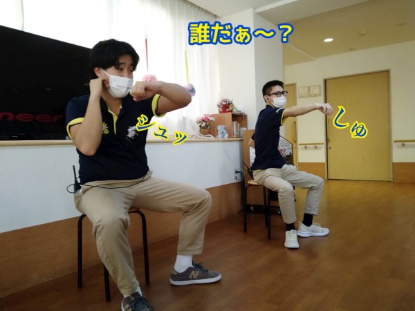 職員と一緒に、ボクサーになりきって!