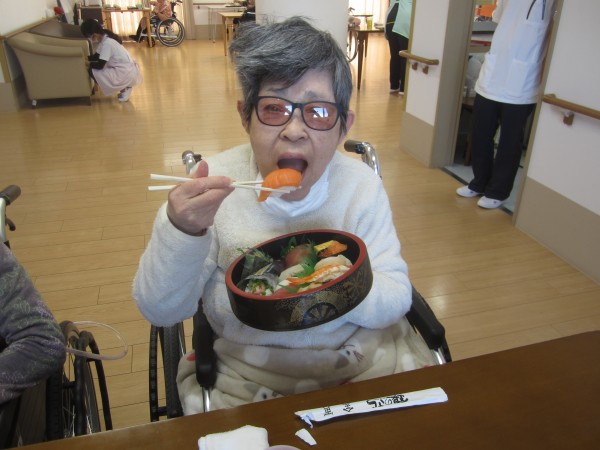 施設では、あまり食べれない特別に握り寿司が提供されました。