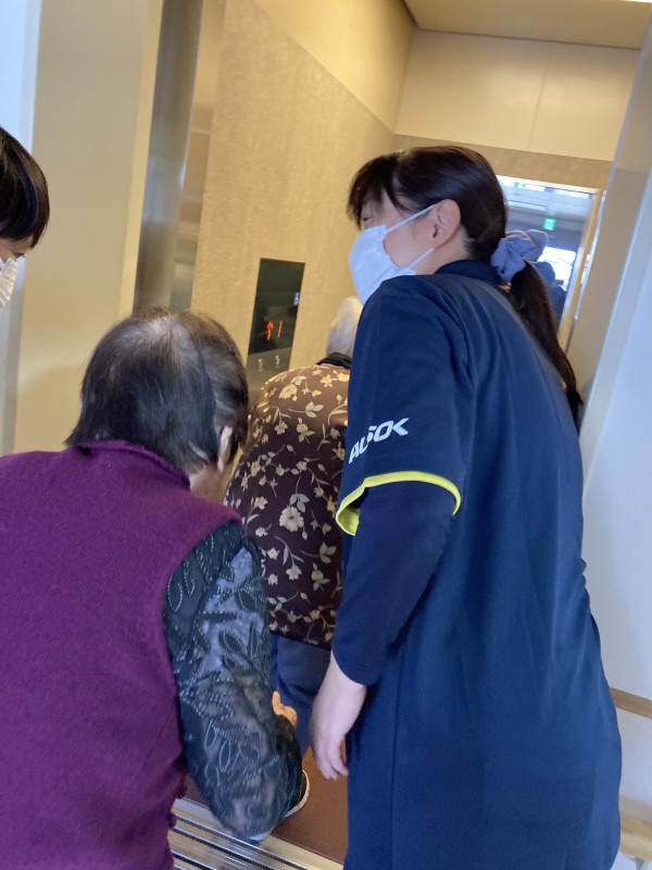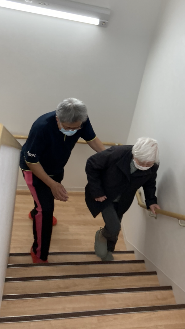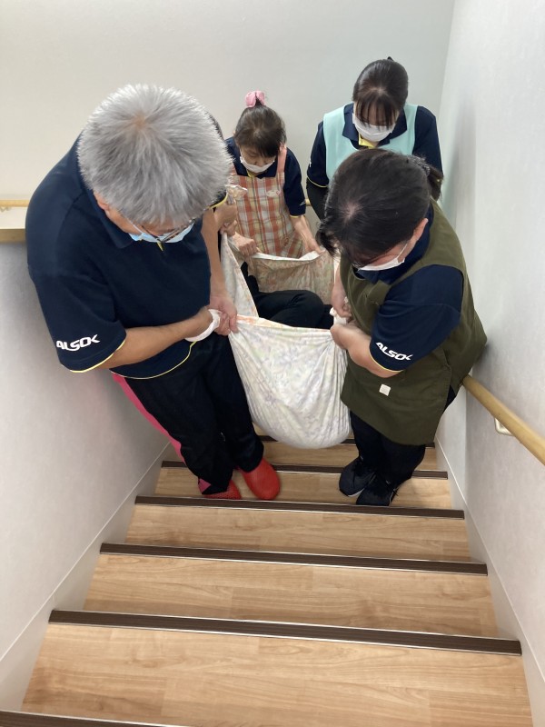 職員は1階の利用者様を階段とエレベーターを使用して2階へ避難誘導をしました。