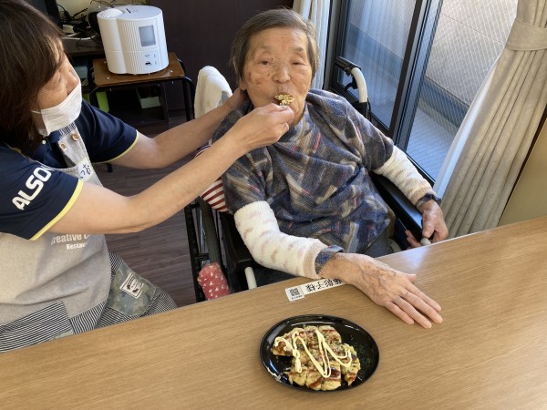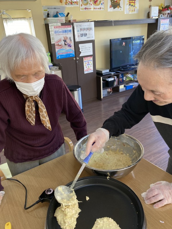 今回のおやつレクは、2F恒例「お好み焼きレク」のご様子です(*'ω'*)