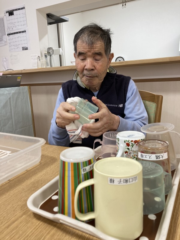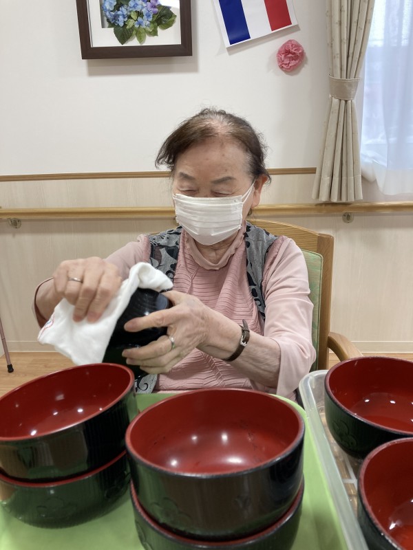 サニーレタスとほうれん草を頂いたのでお昼の豚丼に添えて見ました。ちんげん菜のカニカマ和え、デザートには白桃。皆さん、あっという間にペロリと完食⁉️食器やコップ拭きがはかどります♪