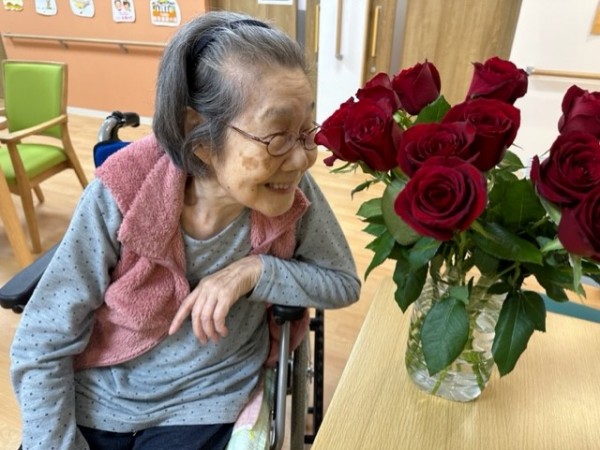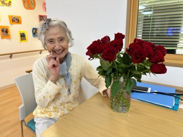 先日誕生日を迎えられた方へご家族様がバラを届けてくれました♪