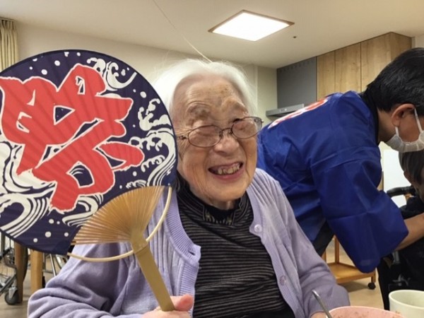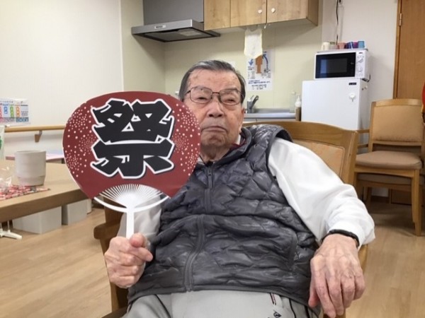職員は法被を着てご利用者様をお迎えしました。中には、ひょっとこのお面をした職員も(笑)