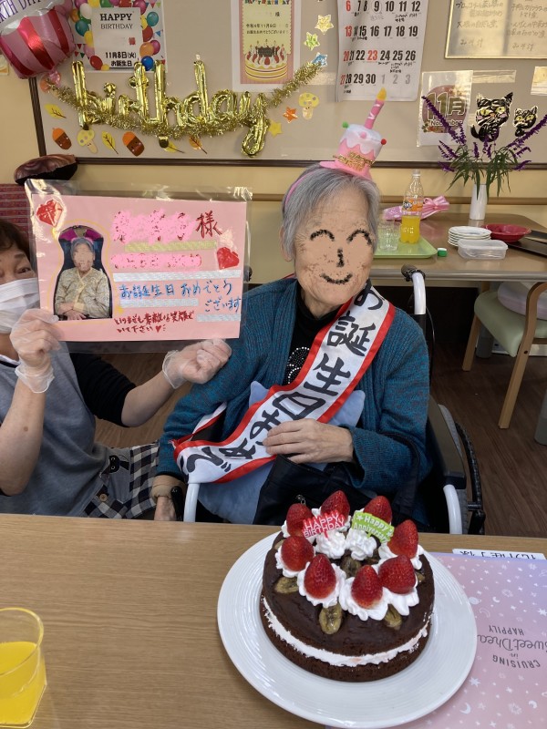 2Fご利用者様2名のお誕生日会を行ないました。11月は1Fも2名で一番多い月になります(*'▽')
