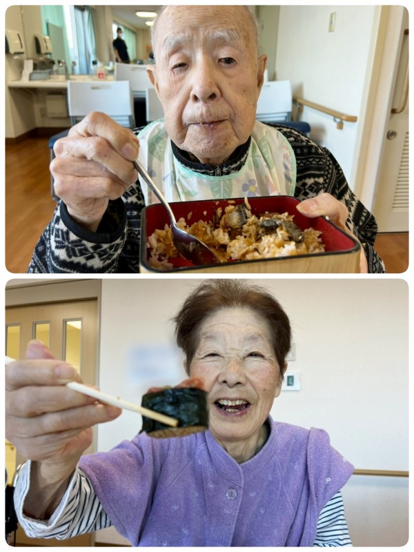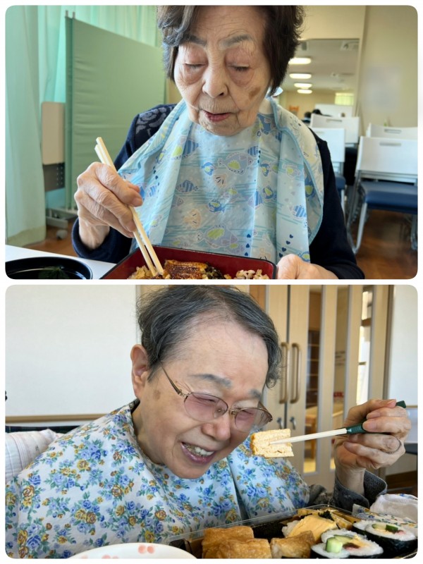 鰻やお寿司を目の前に、ニッコリ笑顔♪