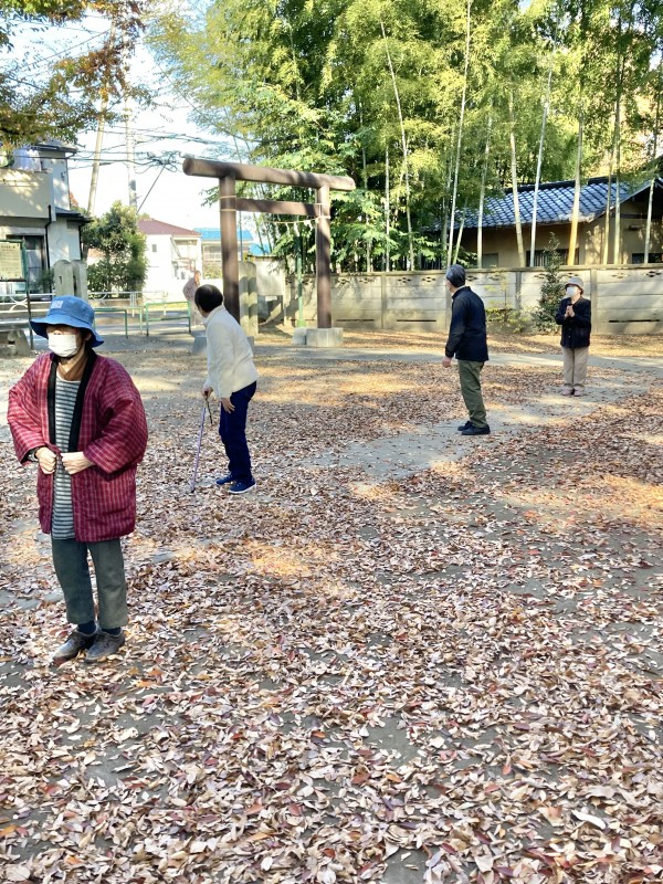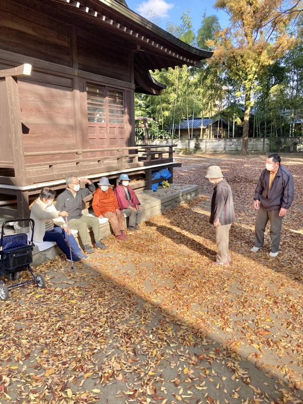 お昼の後は、天気が良いので神社に皆でお散歩です。
