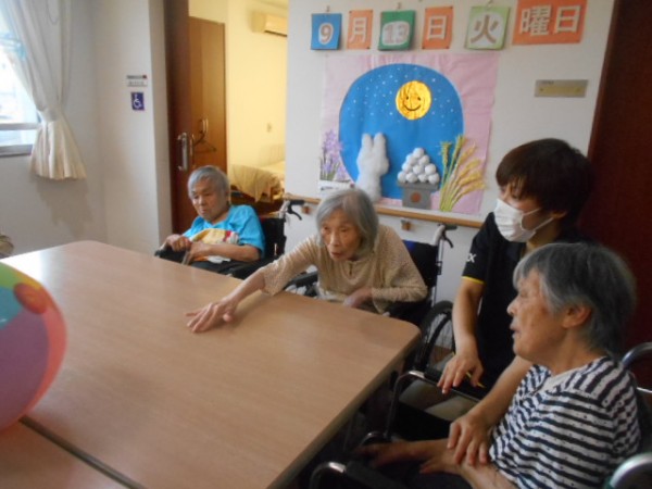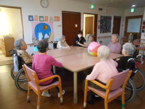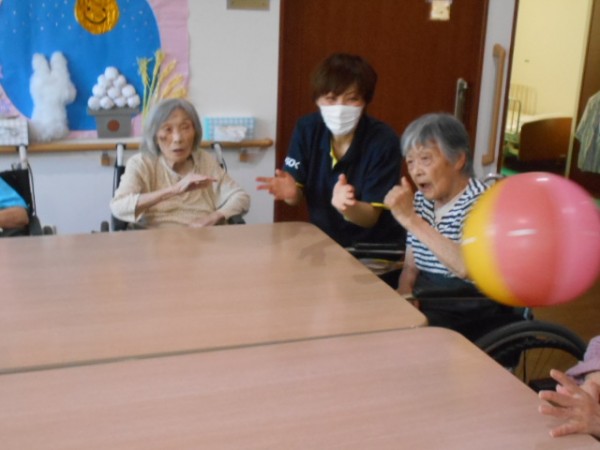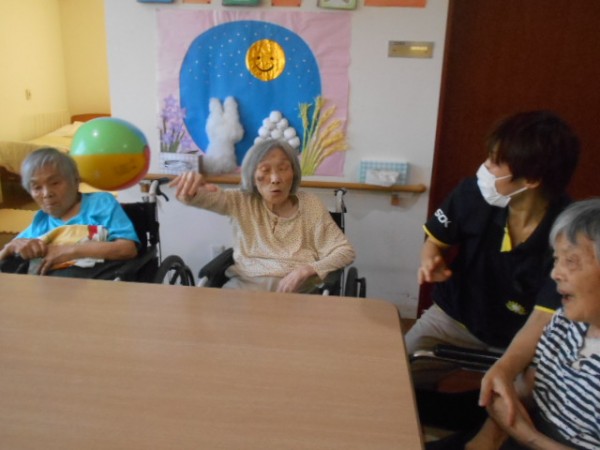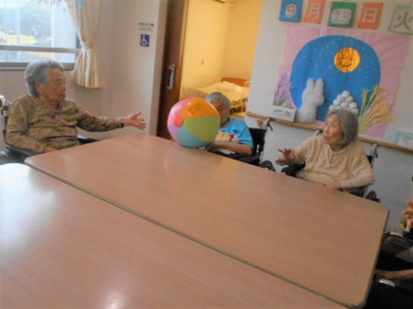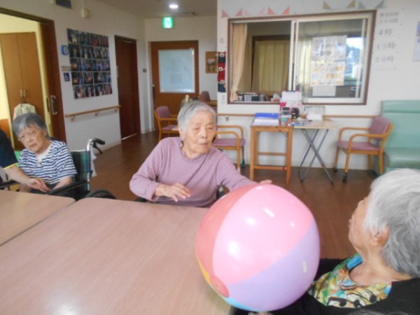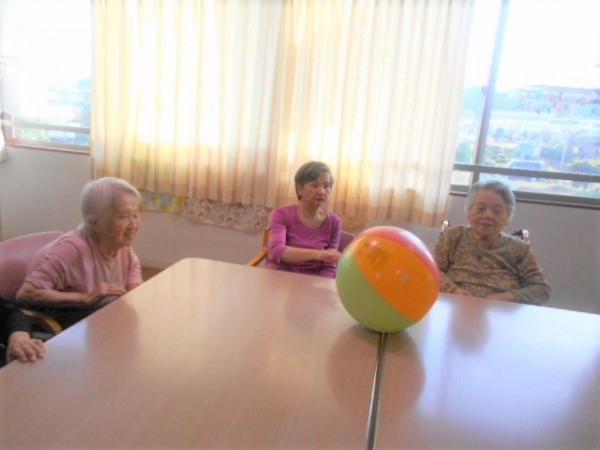 今日の2階のレク「ボール転がし!!」