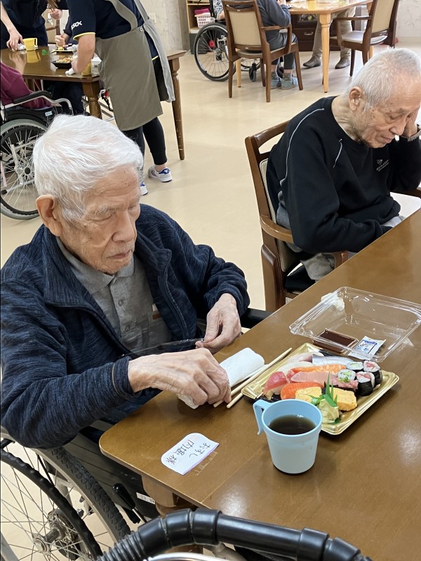 しっかり食べれるよう食事のメニュー、食べ物の位置はもちろんお茶やおしぼりの位置までご説明しています。