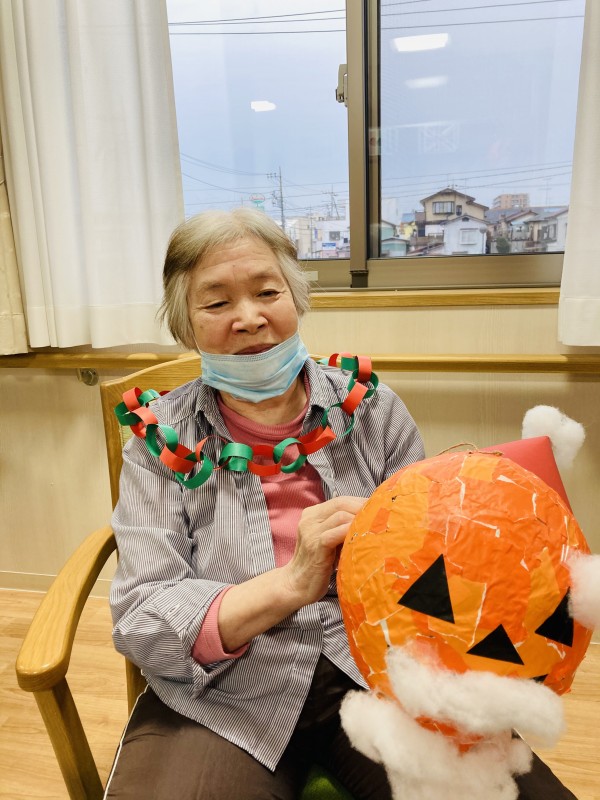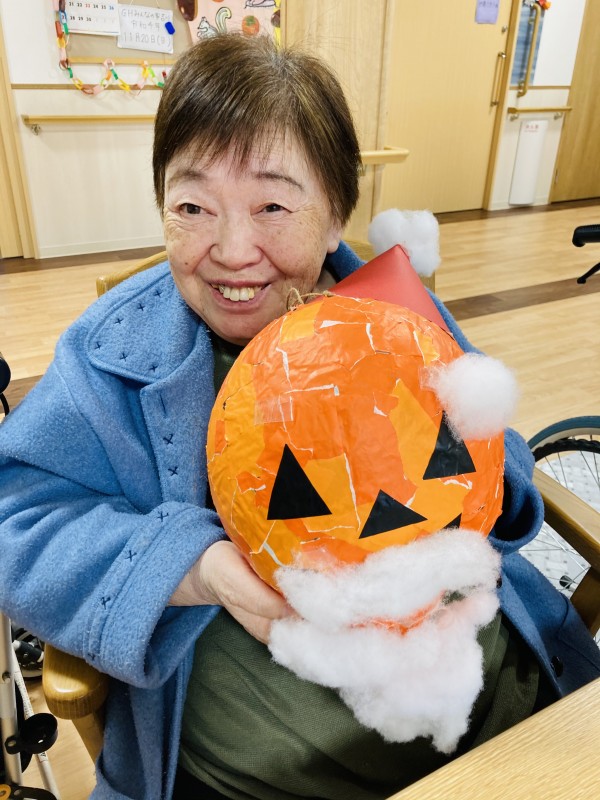 これはハロウィンに皆さんで作成したジャックオランタン、サンタクロースに変身しています❣️