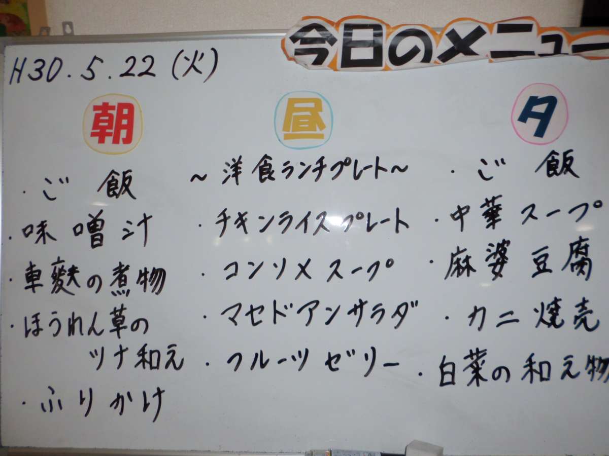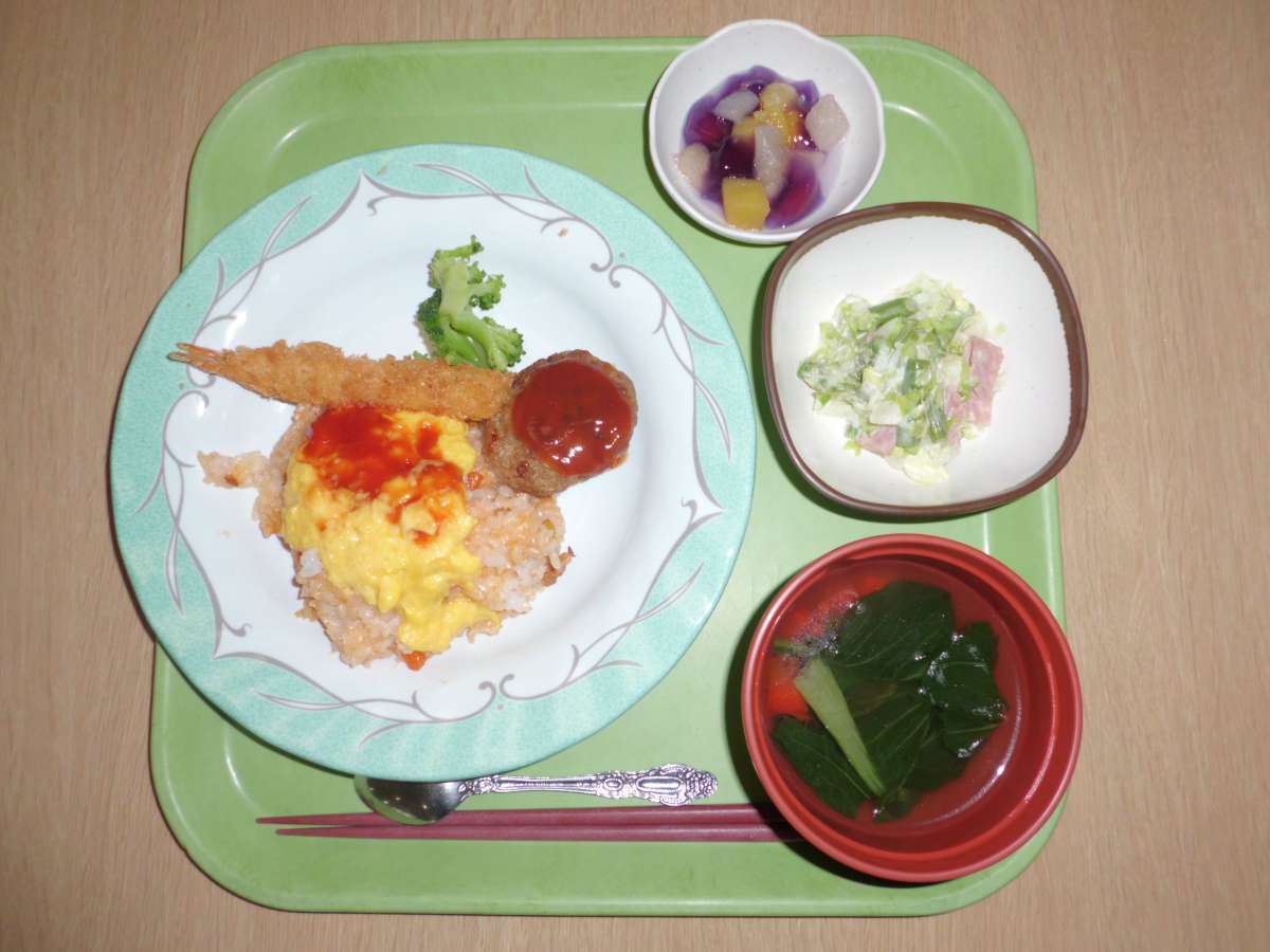 介護付有料老人ホームすこや家大宮日進の本日の献立は、朝食が和食・昼食が洋食・夕食が中華の和洋中の豪華版。