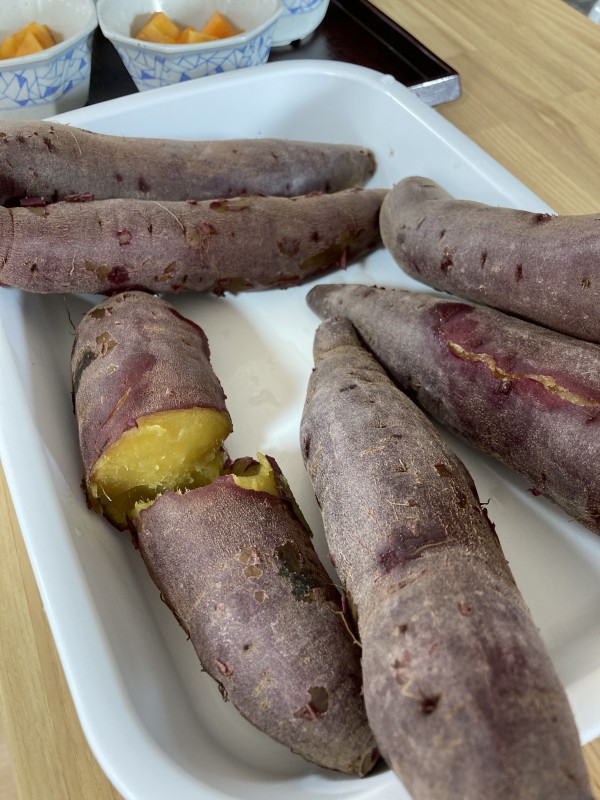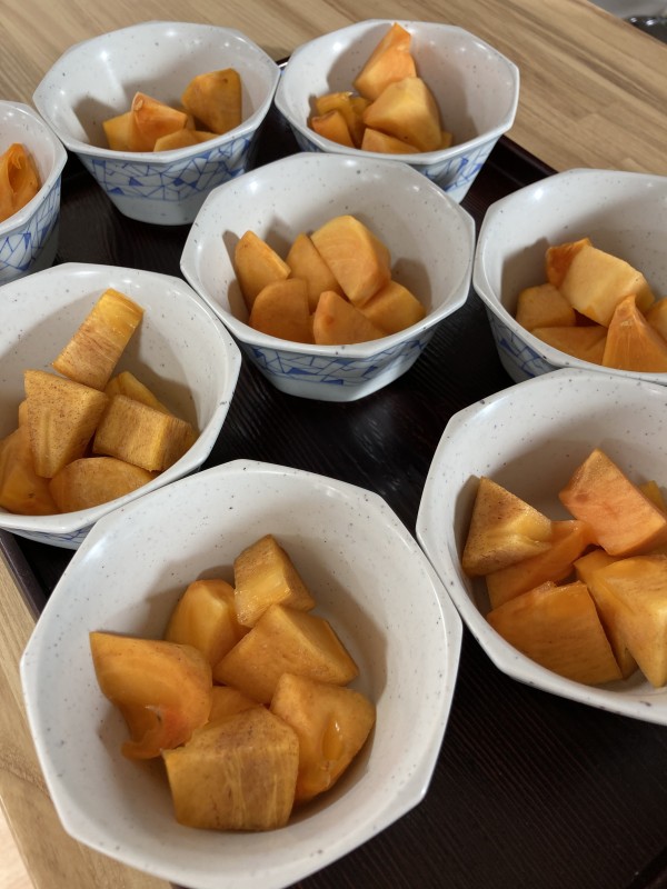 体を動かした後は美味しいサツマイモと柿が待っています(o^^o)