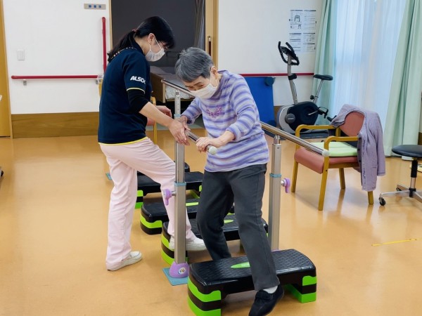 最後に機能訓練の紹介です。機能訓練士の方と一緒に手すりを使って足踏みしたり足移動を行っています。やってみたい方はぜひとも遊蓮田に一声宜しくお願いします♪