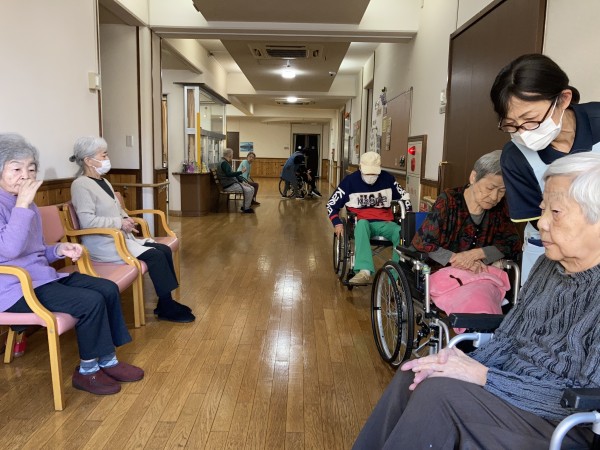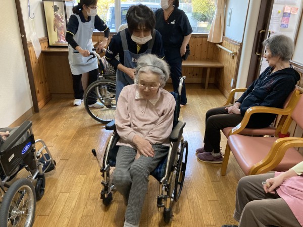 戻ってきたご入居者様に「どうだった?!」と質問攻めです。