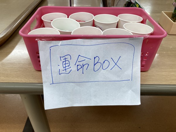 そのあと、今回ご用意した「運命BOX」という箱がありまして、その中から自由に一つ選んでもらい、カップの裏に、何かしらの結果が刻まれてます!プラスもあればマイナスも!なんと悪魔的ルール!!( ゚Д゚)