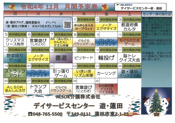 デイサービスセンター遊・蓮田☎:048-765-5500