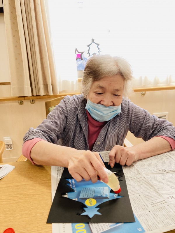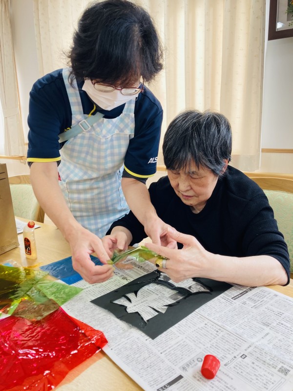 最初は「難しそう‥」と少し不安気だった皆さんですが、作り始めたらとても楽しそうです❣️窓に飾るとキラキラ光るので、毎日皆さんで眺める楽しみが出来ました❗️
