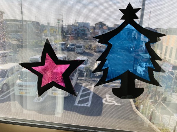 画用紙とフィルムを使って窓にもクリスマスの飾り付けをしてみました❗️
