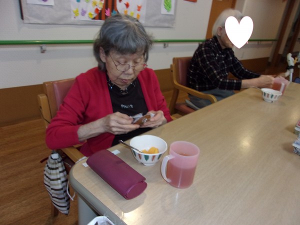 おやつにお出しすると、「あら~柿だね~美味しそうね~」とニコニコされていました\(^o^)/