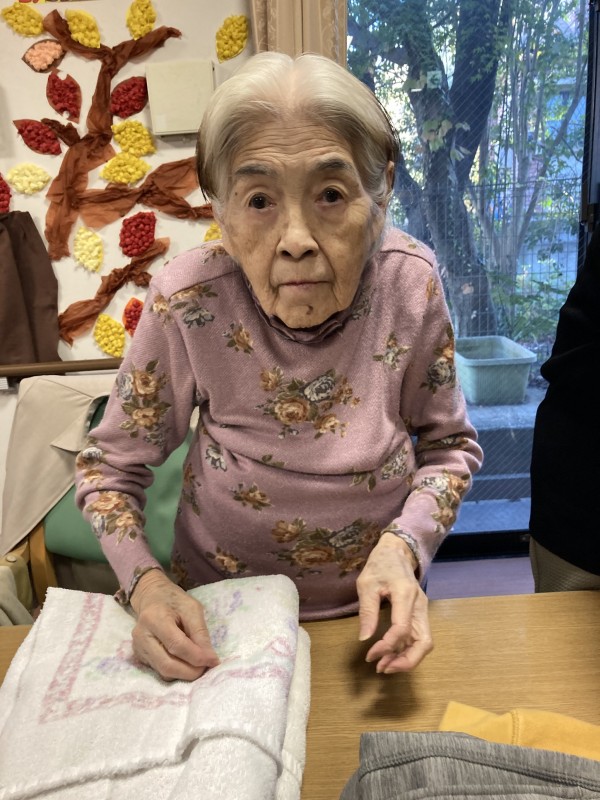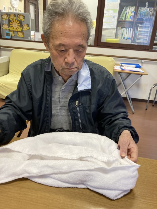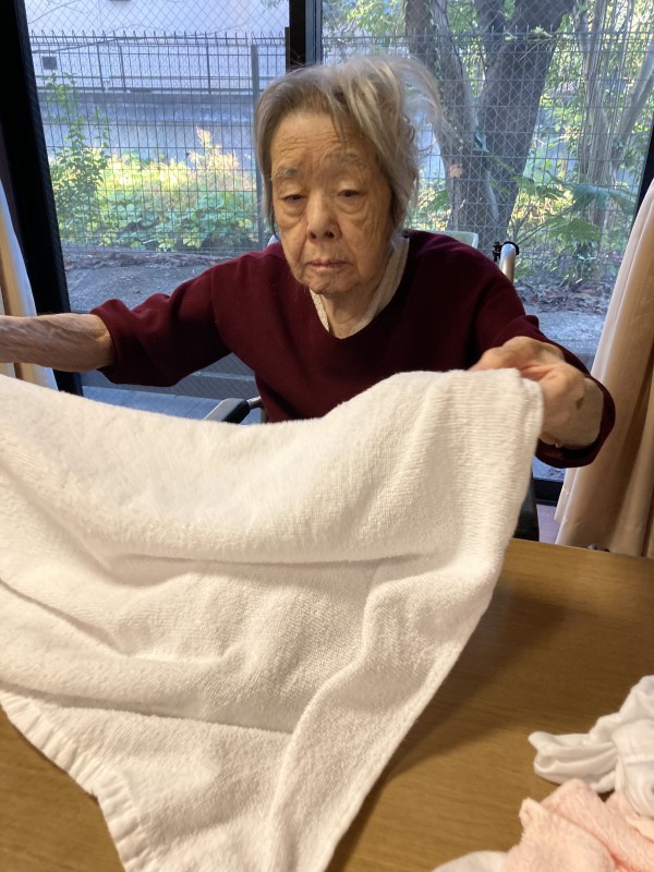 こんな寒い中、利用者様は進んで洗濯物を畳んでくださりスタッフ一同とても助かっております。