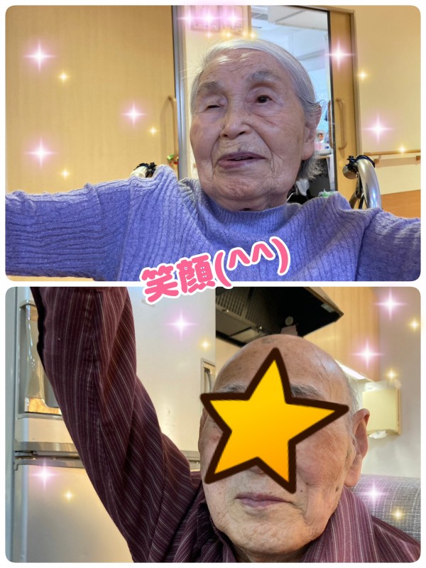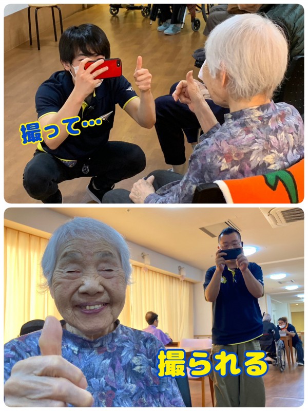 現場のケアスタッフが、体操のエスコートをしながら、あるいはおやつの準備をしながら撮ってくれています。