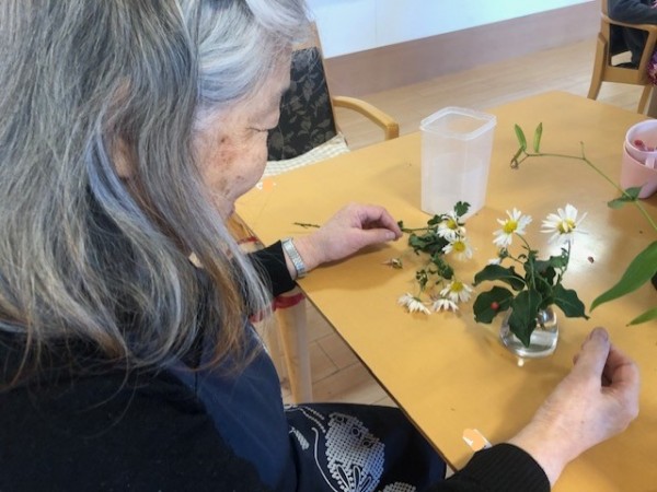 お花が大好きな入居者様は花が大好きで、たくさんの花瓶に活けてくれました