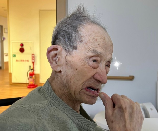 しっかり口腔ケアをする102歳様。