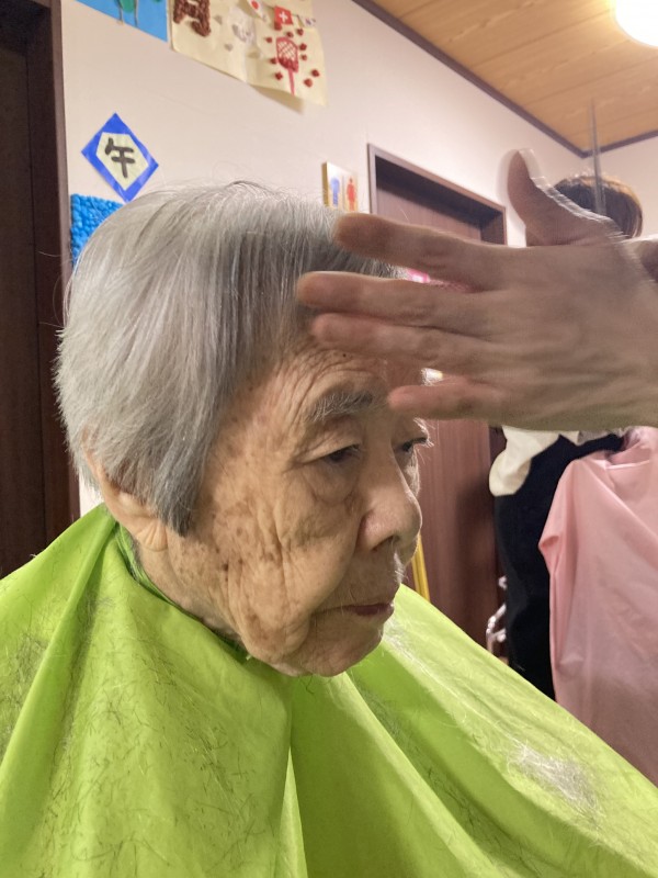 今日は、訪問の理美容がありましたので髪を切って頂きました。