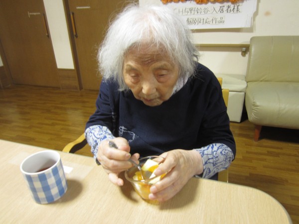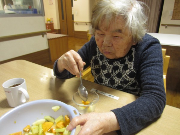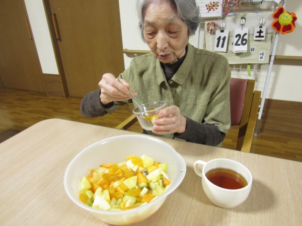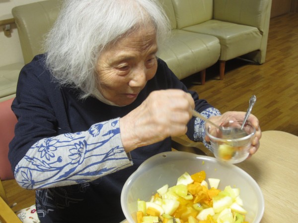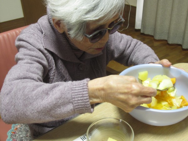 フルーツをご自身ですくって美味しそうに召し上がられておられました。