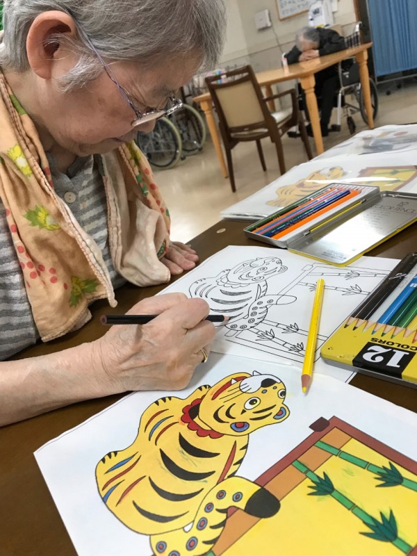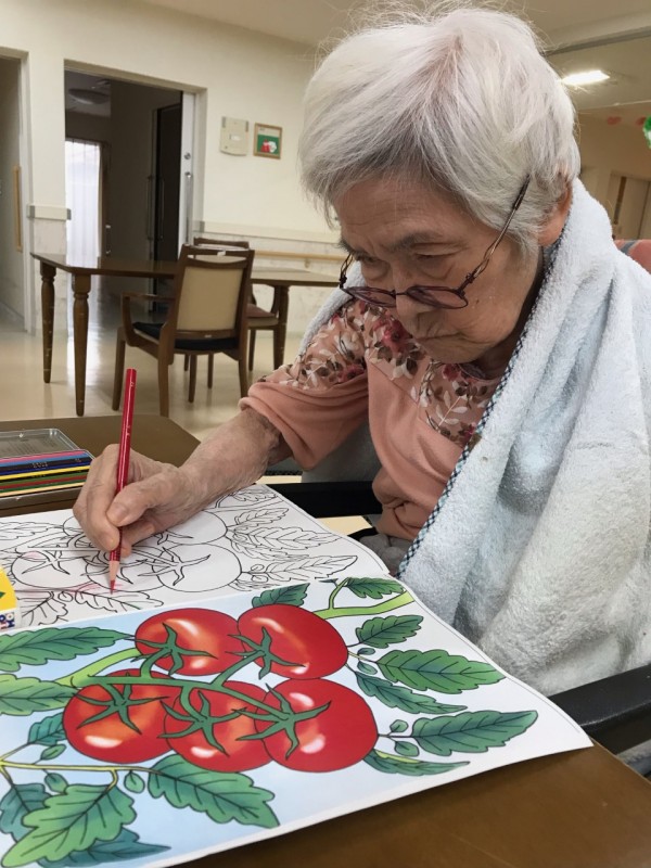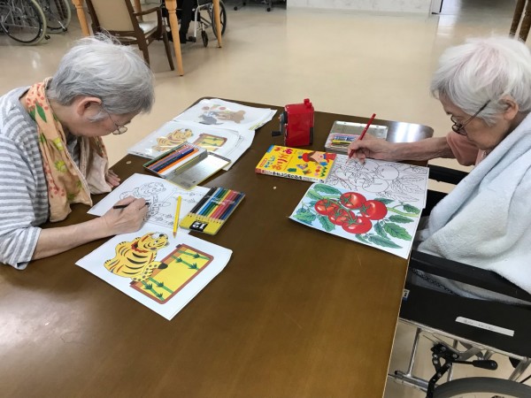 さて、レクリエーションの定番ではありますが大人の塗り絵をただいま実施中~