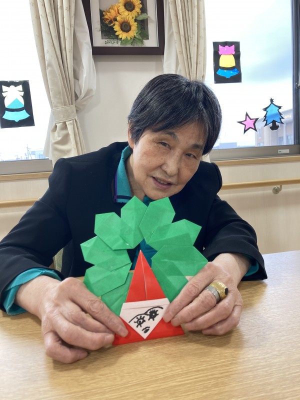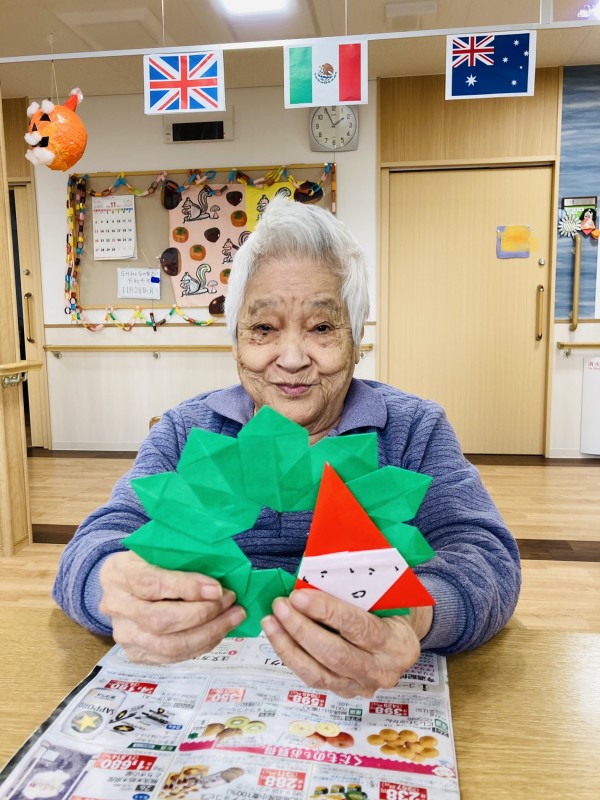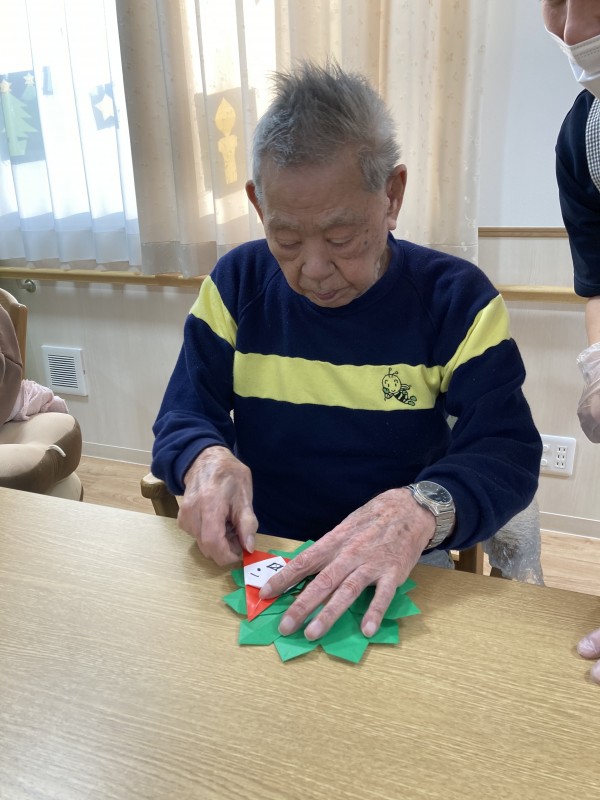 クリスマスリース作りに挑戦❗️職員に教わりながら少しずつ少しずつ、仕上げにサンタさんに顔を描き、可愛いリースの出来上がりです❣️