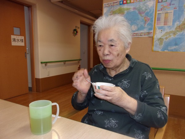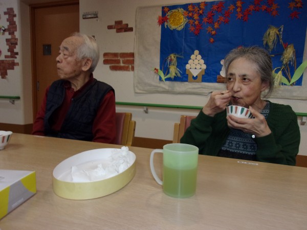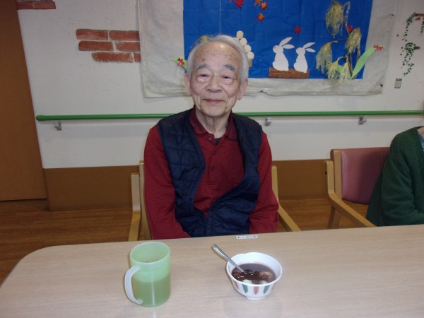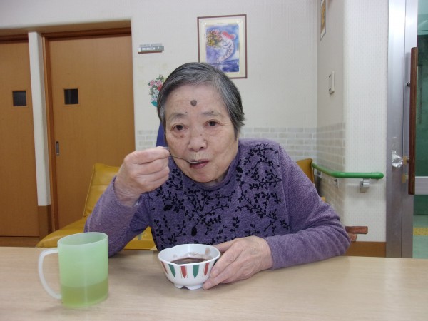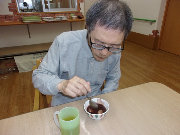 今日は職員手作りのお汁粉をおやつに、お出ししました❤