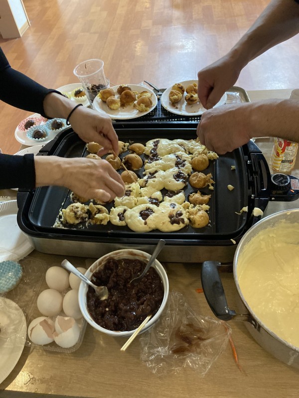 こんなに沢山、あんこ入りベビーカステラ(生クリーム添え)が出来あがりました!