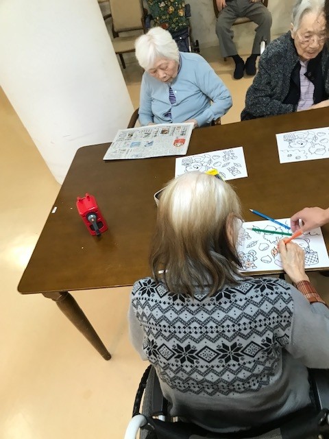 本日のレクリエーションは塗り絵だよ~3階で実施中~