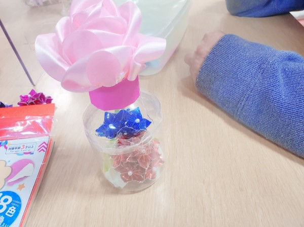 みると、以前〇〇ケアスタッフがプレゼントした手作りのお花をペットボトルの中に入れ、