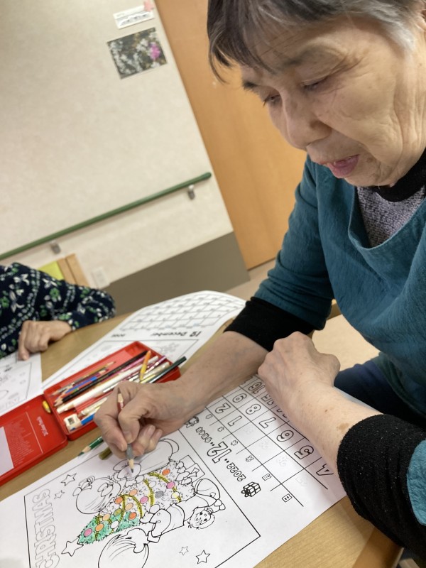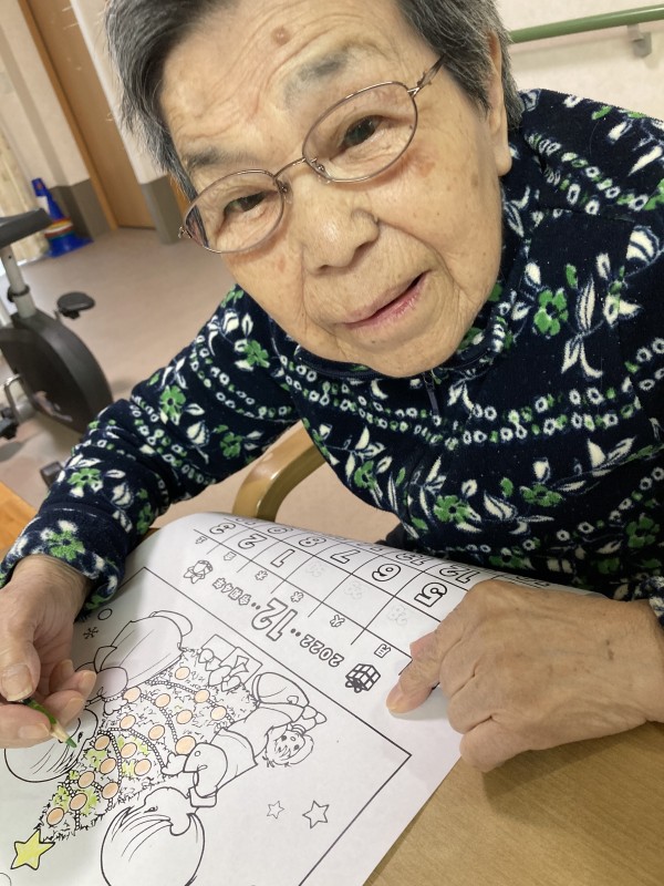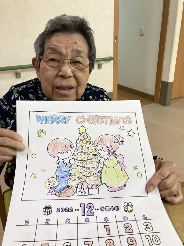 居室に飾るカレンダーの塗り絵が、本部より届いたので皆様で作りました。