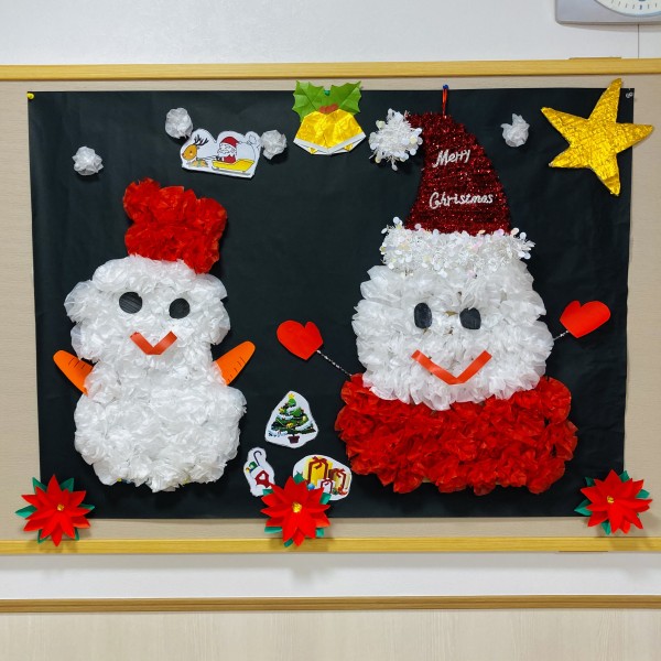 1Uフロアです。立体的で豪華なツリーと可愛い雪だるまが出来上がりました❣️