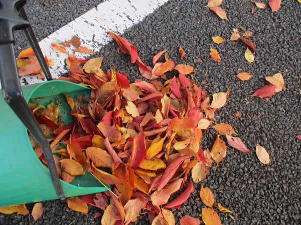 本日は外に出て歩道の落ち葉掃きです!!