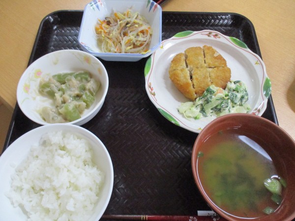 美味しい!「レタスサラダ」出来ました!メンチカツに添えて ♥♥♥ 「いただきま~す」