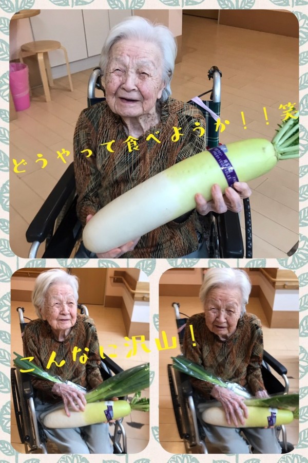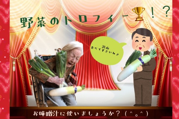立派だなぁーっと満面の笑みでお野菜を抱えられました♡