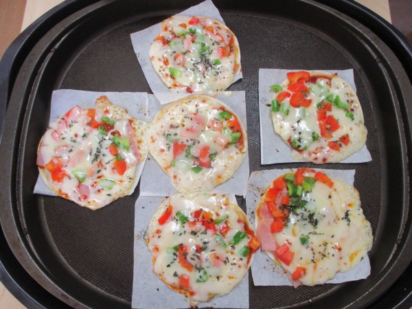 今日のおやつは、ギョーザの皮でミニピザにしてみました!